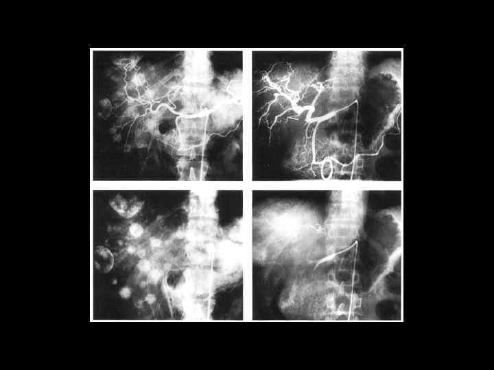 АКТУАЛЬНЫЕ ВОПРОСЫ РЕНТГЕНОЛОГИИ ЛУЧЕВАЯ ДИАГНОСТИКА ОЧАГОВЫХ ПОРАЖЕНИЙ ПЕЧЕНИ Диапевтические мероприятия во время ангиографии при злокачественных опухолях печени: 1. Эмболизация и химиоэмболизация 2. Инфузия цитостатических препаратов в сосуды опухоли