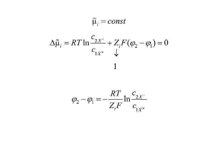 Уравнение Нернста – Планка: Градиент концентрации (химического потенциала) Градиент электрического потенциала = Градиент электрохимического потенциала