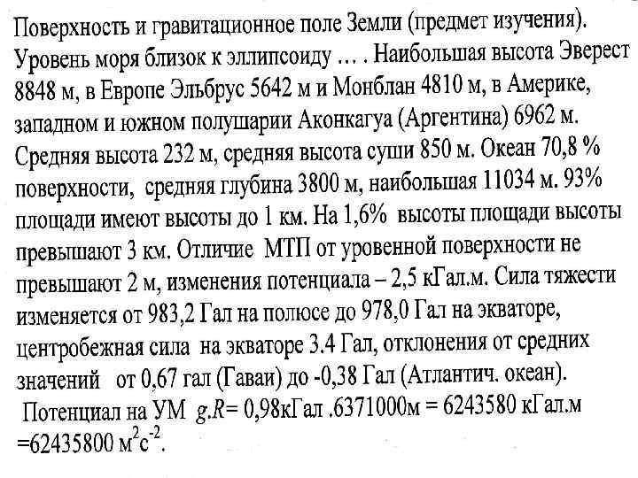 Геодезическая высота Для определения положения какой-либо точки физической поверхности Земли относительно поверхности референц-эллипсоида нужно знать ещё третью координату – геодезическую высоту.