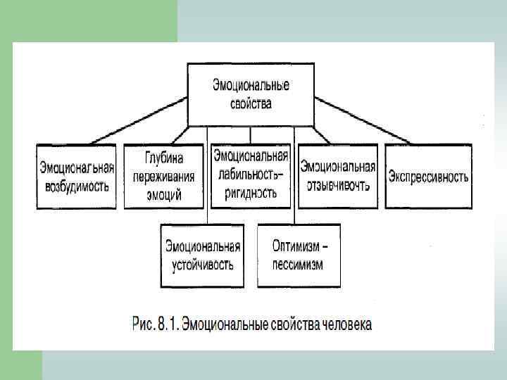 Эмоциональные и волевые свойства личности: К эмоциональным свойствам относятся: эмоциональная возбудимость, глубина переживания эмоций, эмоциональная лабильность – ригидность, эмоциональная отзывчивость, эмоциональная устойчивость и экспрессия. оптимизм и пессимизм. l l В психологии выделяют следующие волевые свойства личности: Целеустремленность; Решительность; Смелость; Настойчивость; Выдержка; Инициативность; Самостоятельность; Дисциплинированность. l l l l l