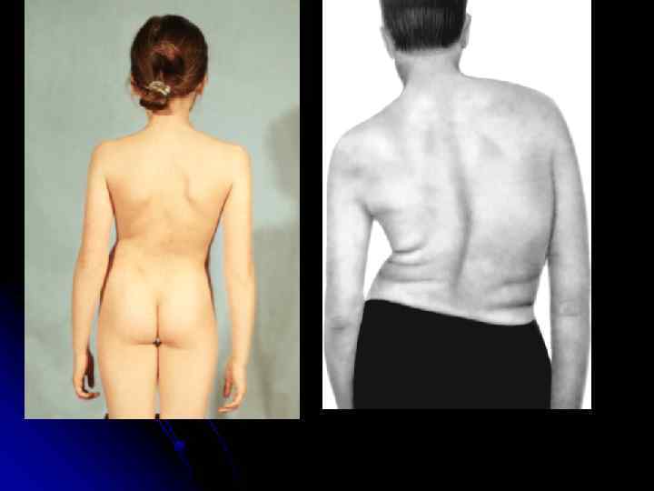 Нормальная осанка характеризуется пятью признаками 1 — расположением остистых отростков позвонков по линии отвеса, опущенного от бугра затылочной кости и проходящего вдоль межягодичной складки; 2 — расположением надплечий на одном уровне; 3 — расположением обеих лопаток на одном уровне; 4 — равными треугольниками (справа и слева), образуемыми туловищем и свободно опущенными руками; 5 — правильными изгибами позвоночника в сагиттальной плоскости (глубиной до 5 см в поясничном отделе и до 2 см — в шейном).
