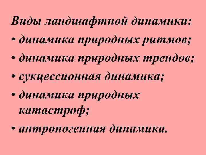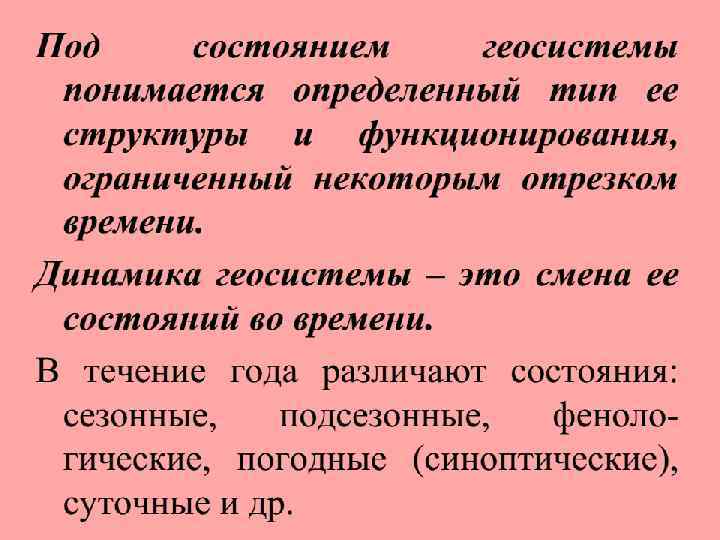 Динамика ландшафтов Ландшафт во времени – совокупность его переменных состояний