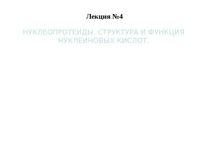 Лекция № 4 НУКЛЕОПРОТЕИДЫ. СТРУКТУРА И ФУНКЦИЯ НУКЛЕИНОВЫХ КИСЛОТ.
