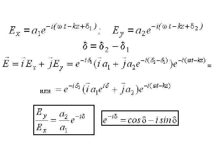 то, следовательно, наличие комплексной амплитуды у волны свидетельствует о наличии разности фаз и , т. е. в общем случае эллиптичности поляризации волны, тогда как линейно поляризованная волна должна иметь вещественную (действительную) амплитуду.