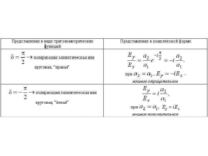 Из соотношения (3) следует при: круговая поляризация, если “правая” поляризация.