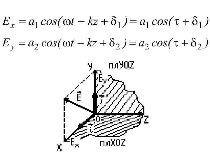Уравнения описывают электромагнитные волны, поляризованные линейно в плоскостях xoz и yoz, соответственно,