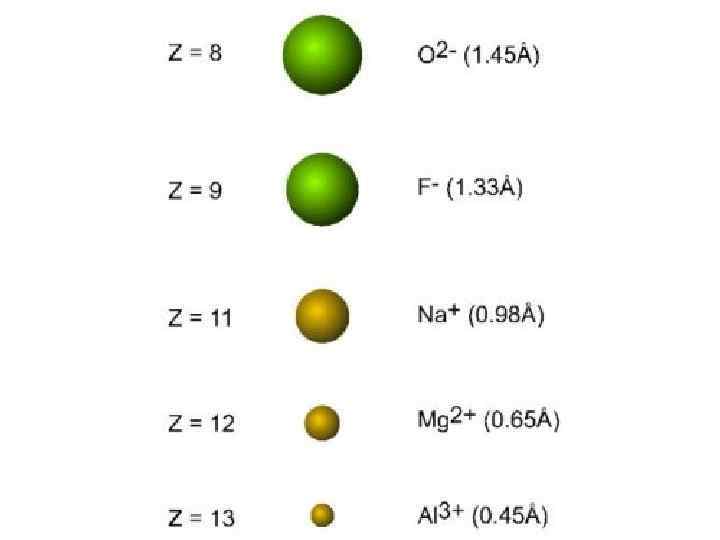 Ионы, имеющие одинаковое количество электронов – изоэлектронные. Внутри изоэлектронных серий ионов ионный радиус уменьшается с увеличением атомного номера.