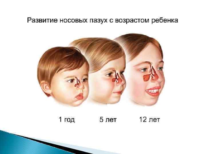 Однако, сами лицевые пазухи (лобная, гайморова и так называемый решетчатый лабиринт) формируются у людей не к моменту рождения, а гораздо позже. Например, у новорожденных ребятишек лобных пазух нет вообще — они полностью формируются лишь к возрасту 10 -12 лет. А гайморова пазуха у деток до пяти лет отличается почти зародышевыми размерами. В связи с этими анатомическими особенностями у деток в возрасте до 3 -4 лет никаких гайморитов в принципе не бывает. А фронтитов (воспаления лобных пазух) не бывает и того дольше — примерно до 8 -10 лет.