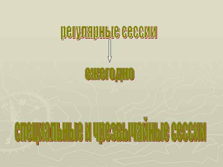 Решения по повестке дня ►принимаются простым большинством голосов и не обязательны для государств-членов, но рассматриваются как мнение мирового сообщества и в этом смысле имеют значительный моральный авторитет