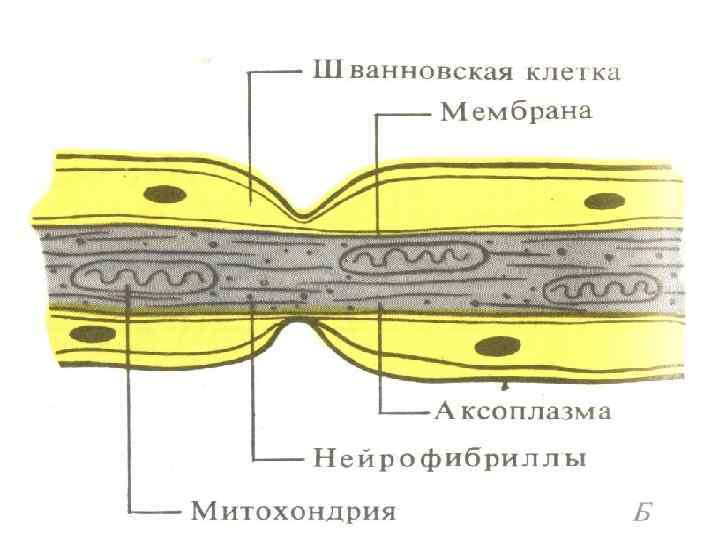 Каждый нерв состоит из многочисленных афферентных и эфферентных (безмякотных, мякотных) нервных волокон. НВ имеют диаметр 0, 5 – 25 мкм и имеют сложное специфическое строение.