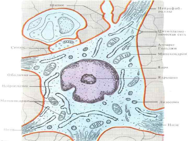 Нейрон – морфофункциональная единица НС. Состоит из тела, длинного и коротких отростков (нервных волокон), осуществляет восприятие, обработку и передачу информации(возбуждения).
