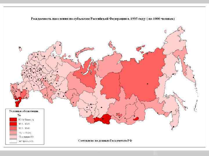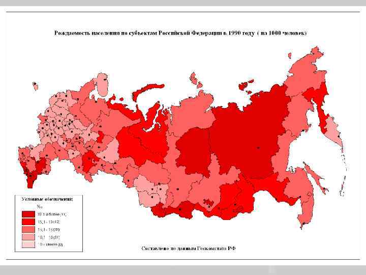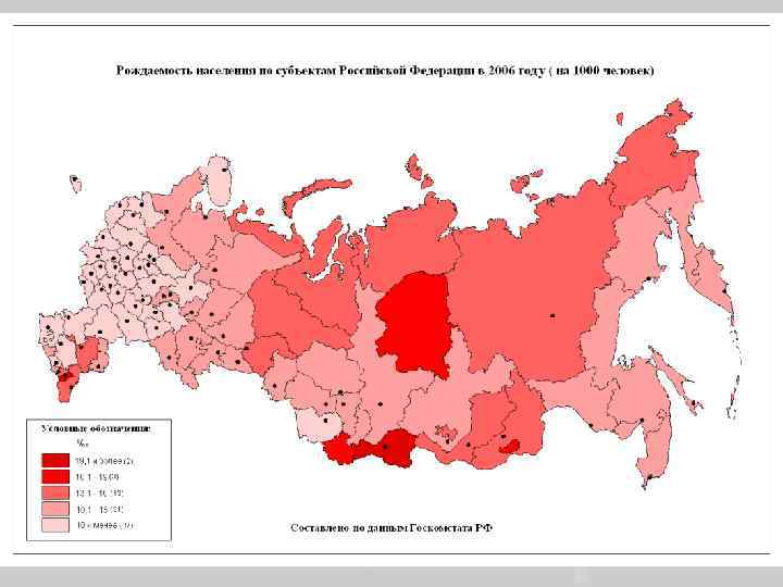 Суммарный коэффициент рождаемости России Годы Все население Городское Сельское 1961 -1962 2, 417 1, 935 3, 195 1964 -1965 2, 139 1, 732 2, 928 1969 -1970 1974 -1975 1980 -1981 1986 -1987 1988 1990 1995 1999 2000 2001 2002 2003 2004 2005 1, 972 1, 993 1, 895 2, 194 2, 130 1, 892 1, 337 1, 157 1, 195 1, 223 1, 286 1, 319 1, 340 1, 287 1, 733 1, 757 1, 700 1, 947 1, 896 1, 698 1, 193 1, 045 1, 089 1, 124 1, 189 1, 223 1, 247 1, 197 2, 535 2, 764 2, 562 3, 162 3, 057 2, 600 1, 813 1, 534 1, 554 1, 564 1, 633 1, 666 1, 685 1, 589 Демографический ежегодник РФ 2009