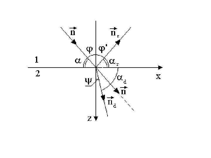 Выберем оси координат так, чтобы координатная плоскость z=0 совпадала с плоскостью раздела сред 1 и 2, и чтобы направление распространения падающей волны лежало в плоскости xz.