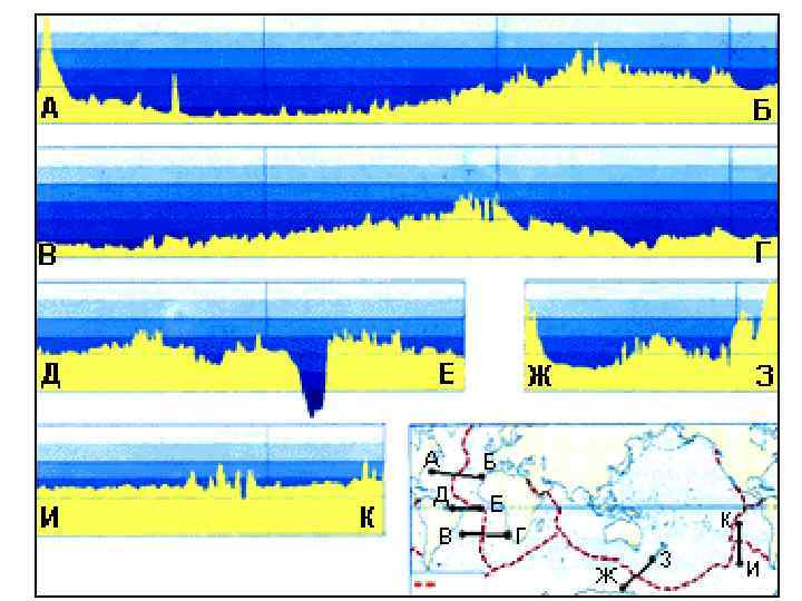 Лекция 5 Главные структурные единицы литосферы, их размещение и сочленение в пределах современных литосферных плит. Внутренние области океанов. Срединно-океанические хребты и абиссальны равнины. Изменение мощности и стратиграфического объема первого (осадочного) слоя коры по мере удаления от оси спрединга. Главные системы трансформных разломов. Внутриплитные возвышенности и хребты, формирование структур, связанных с активностью горячих точек. Микроконтиненты. Происхождение больших и малых бассейнов океанического типа. Области перехода континент — океан. Пассивные континентальные окраины их строение, характерные осадочные и магматические формации. Активные континентальные окраины и островные дуги как выражение зон субдукции, свойственные им формации и структуры. Задуговые бассейны (краевые или окраинные моря) и разные геодинамические условия их формирования. Междуговые бассейны и их происхождение.