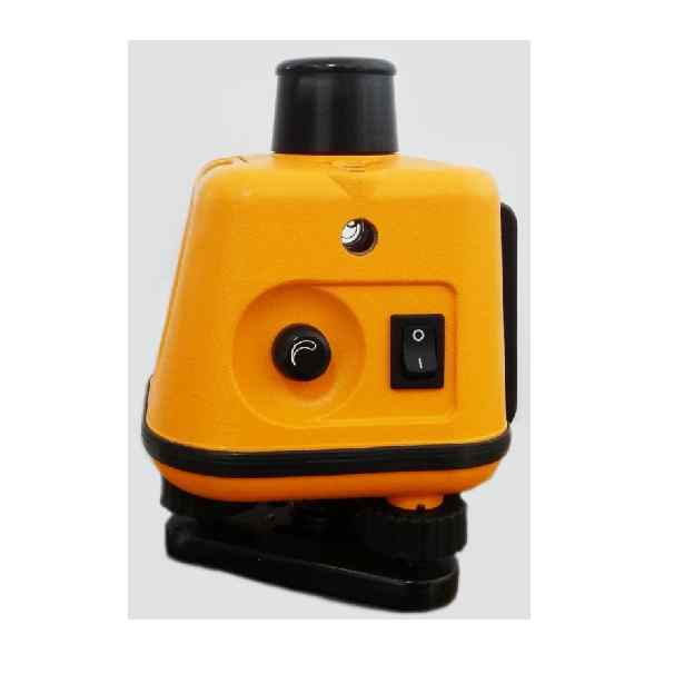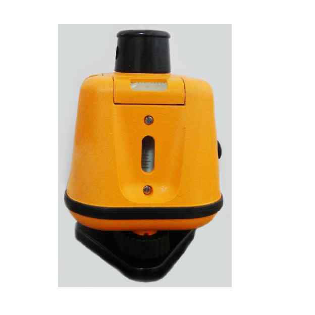 . Принцип работы В металлическом корпусе 3 установлен полупроводниковый красный лазер. Излучаемый лазером луч, проходя через призму, расположенную в головке нивелира 4, разделяется на два взаимно перпендикулярных луча. При вращении головки, осуществляемой с помощью электродвигателя, луч, перпендикулярный оси вращения описывает плоскость. Второй луч, направленный вдоль оси вращения, остается неподвижным. Скорость вращения плавно регулируется от 0 до 500 об/мин с помощью рукоятки 6. Включение-выключение осуществляется переключателем 5. В верхней части корпуса расположен круглый уровень 7, предназначенный для предварительной установки нивелира в горизонтальное положение. Помимо круглого уровня в верхней части корпуса расположены два цилиндрических уровня 8, служащие для точной установки луча в горизонтальное положение. На боковой поверхности корпуса расположен цилиндрический уровень 9, предназначен для горизонтирования осевого лазерного луча. Установка батареи 12 на корпус нивелира производится с помощью экстрактора 10. Подъемными винтами 2 корпус нивелира наклоняется относительно подставки 1 для выведения пузырьков уровней в среднее положение. Подставка крепится на штатив с помощью отверстия с резьбой.