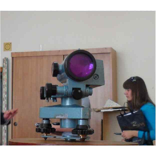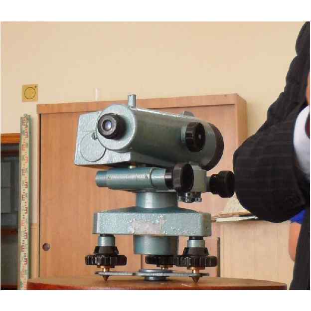 2. 3 С помощью кремальеры добиваемся четкости изображения предмета (рейки), на который наводим нивелир.