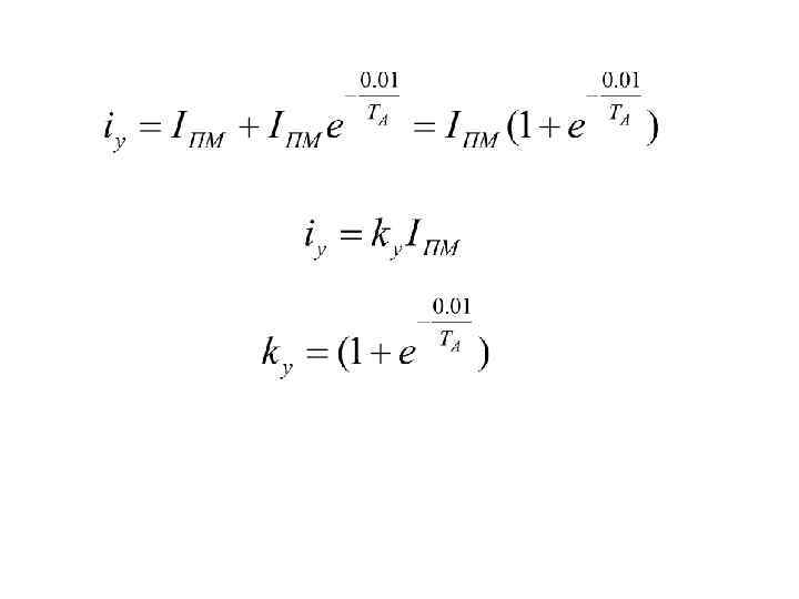 Где - амплитудное значение фазного напряжения источника - сопротивление цепи короткого замыкания - фазовый угол напряжения источника в момент возникновения КЗ - угол сдвига тока в цепи КЗ относительно напряжения - постоянная времени цепи КЗ
