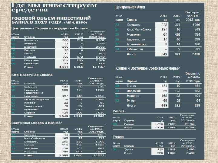 Европейский банк реконструкции и развития в России В России осуществлено 788 проектов Суммарные инвестиции 25, 158 млрд евро 83% средств выделено частному сектору Портфель проектов в н/вр - 5, 423 млрд евро