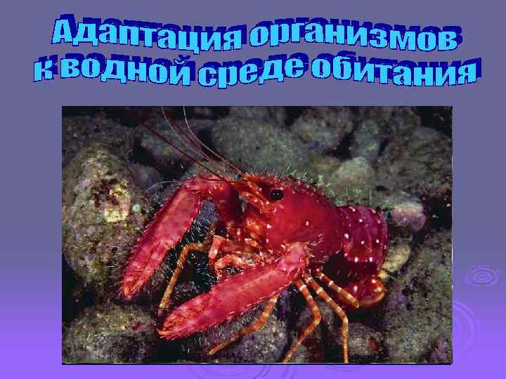 1. Плотность воды в 800 раз выше плотности воздуха. 2. Вязкость воды в 50 раз превышает вязкость воздуха! 3. Вода обладает большей выталкивающей силой, чем воздух. 4. В воде растворяются газы и минеральные вещества. Вода поддерживает организмы, однако в большинстве случаев плотность организмов больше, чем плотность воды. Приспособления для того, чтобы не погружать v. Рыбы – плавательный пузырь, v. Бурые водоросли – воздушные пузыри, v. Фитопланктон – капельки масел в клетках, v. Мелкие морские животные (зоопланктон) – п длинные нитевидные придатки – «парение» в поверхностных вод