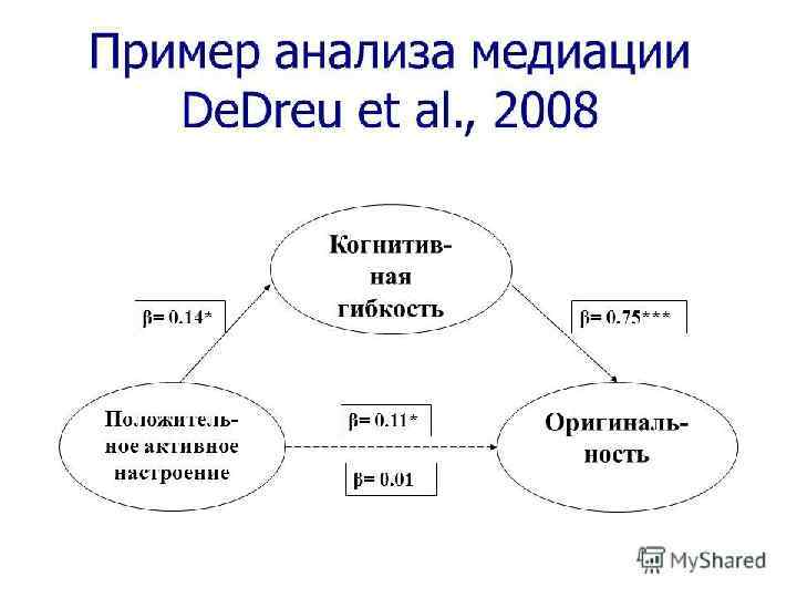 Различение переменных-модераторов и переменных-медиаторов в социально-психологических исследованиях: теоретические, стратегические и статистические соображения Baron, R. M. & Kenny, D. A. (1986). The moderator-mediator variable distinction in social psychological research: Conceptual, strategic, and statistical considerations. Journal of Personality and Social Psychology, 51(6), 11731182. http: //www. myshared. ru/slide/516579/ - презентация лекции Д. В. Люсина