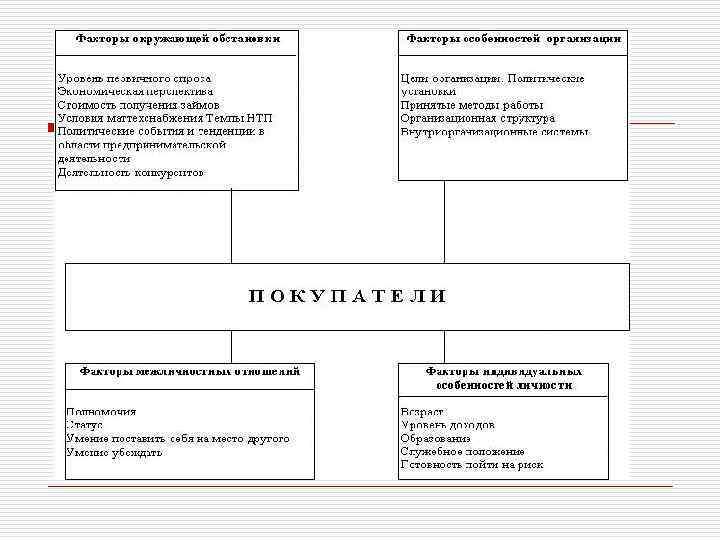 Поведение потребителей в маркетинге. o 5. Чиновники или государственные служащие. o Особенность заключается в том, что приобретении того или иного товара чиновник распоряжается не своими деньгами, а казенными, и, следовательно, эта процедура бюрократизирована и формализована.