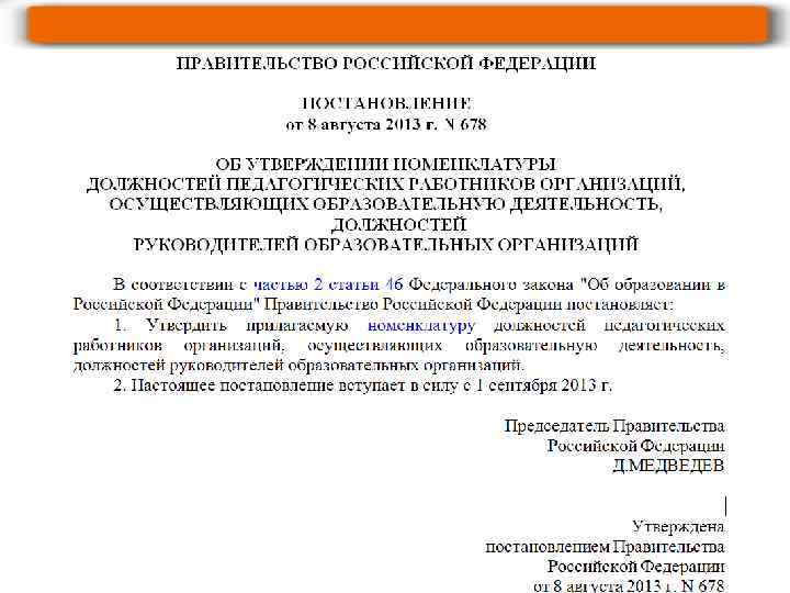 Статья 46. Право на занятие педагогической деятельностью 1. Право на занятие педагогической деятельностью имеют лица, имеющие среднее профессиональное или высшее образование и отвечающие квалификационным требованиям, указанным в квалификационных справочниках, и (или) профессиональным стандартам. 2. Номенклатура должностей педагогических работников организаций, осуществляющих образовательную деятельность, должностей руководителей образовательных организаций утверждается Правительством Российской Федерации.