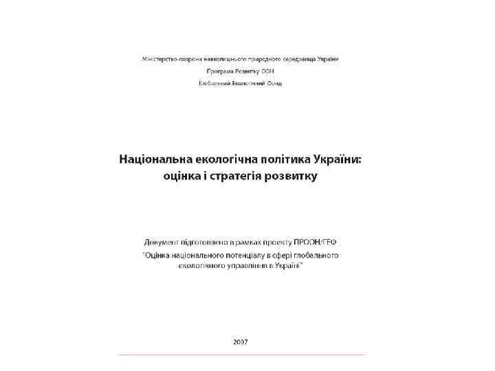 ОСНОВНІ ЗАСАДИ І ПРІОРИТЕТИ ЕКОЛОГІЧНОЇ СТРАТЕГІЇ УКРАЇНИ НА ПЕРШІ ДЕСЯТЬ РОКІВ XXI СТОЛІТТЯ (Міністр екології та природних ресурсів України В. Я. Шевчук) Концептуальні основи національної екологічної стратегії ґрунтуються на закладених раніше базових передумовах: екологічна стратегія розглядається як паритетна складова національної стратегії переходу до сталого розвитку з усіма системними та інтегрованими положеннями, принципами і цілями; національна екологічна стратегія формується і реалізується у взаємозв’язку із Концепцією національної безпеки України, що обумовлює пріоритетність екологічної безпеки у процесі переходу до сталого розвитку; національна стратегія має бути гармонізована з європейською екологічною стратегією відповідно до геополітичного курсу європейської інтеграції України.
