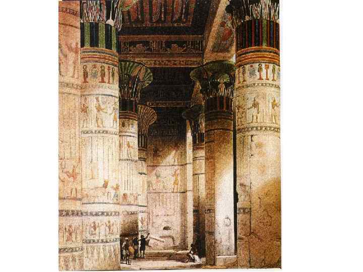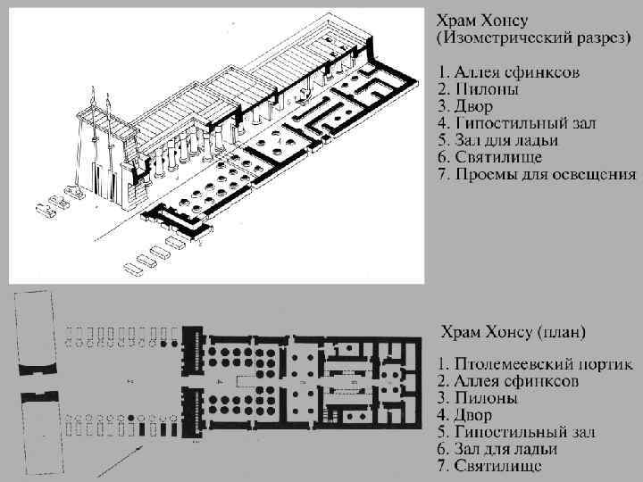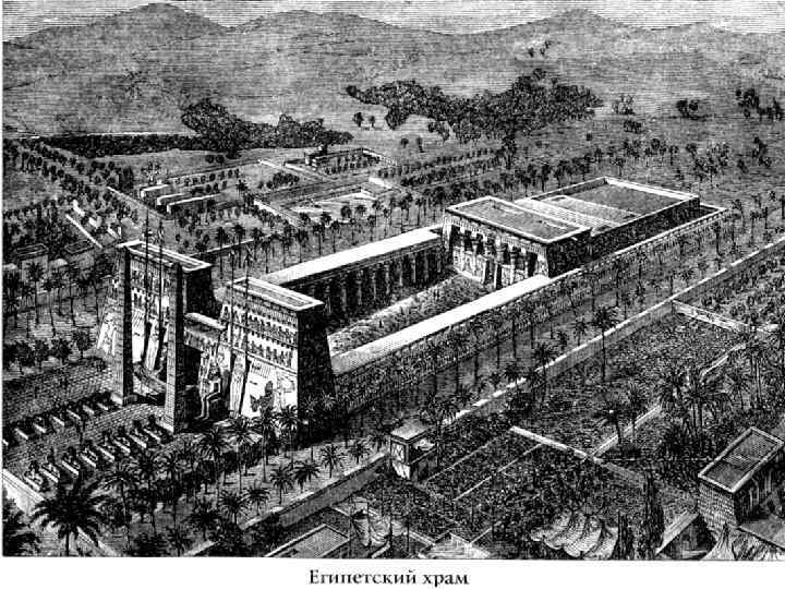 Пилонный храм • Центральная ось египетского храма Нового царства является путем шествия религиозной процессии, движение которой оформляет архитектура храма. • Таким образом, его композиция развертывается во времени. • Два принципа определяют собой общий характер этой композиции: постепенное сужение и затемнение пространства от входа к святилищу.