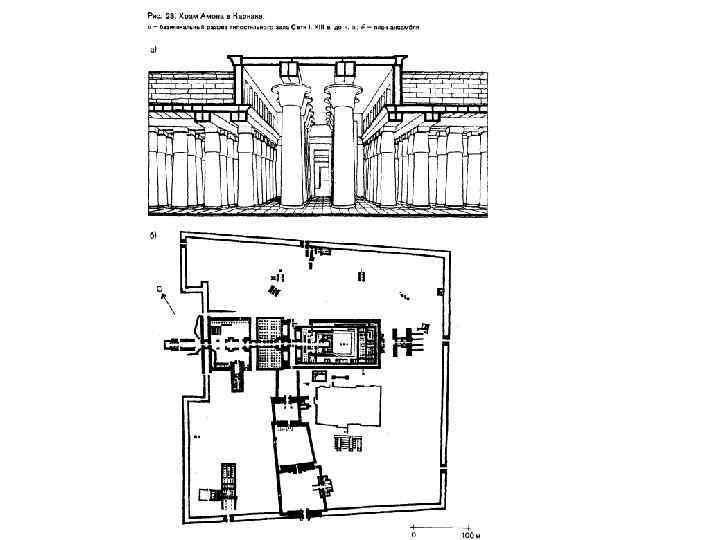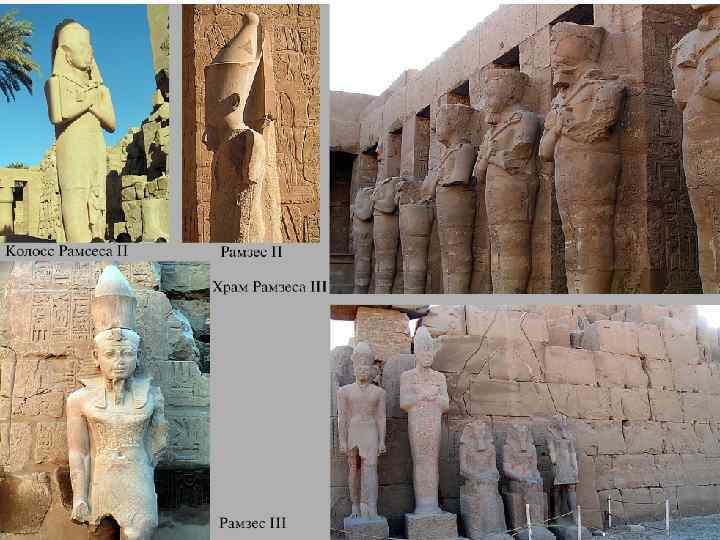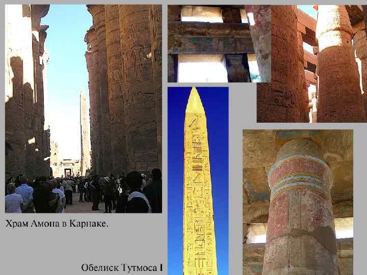 • Египетский храм Нового царства развился из пещерных гробниц Среднего царства и восходит через них к храмикам около пирамид эпохи Древнего царства. • Общая композиция длинного хода, ведущего к залам, объединяет их. Но храм Нового царства отличается от своих предшественников монументальностью форм и громадными размерами