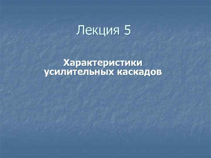 Лекция 5.Характеристики усилительных каскадов..ppt