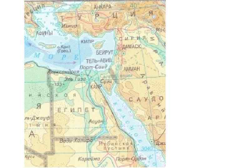 Еги пет • государство в северо-восточной части Африки и на Синайском полуострове Азии, поэтому является страной двух материков. • Египет граничит на западе с Ливией, на юге — с Суданом, на востоке — с Палестинской автономией, Израилем, имеет также морскую границу с Саудовской Аравией и Иорданией. • Омывается на севере Средиземным морем, на востоке — Красным морем. Египту принадлежит самый крупный искусственно сооруженный канал — Суэцкий канал, который соединяет Средиземное и Красное моря, открывая тем самым короткий путь из Атлантического в Индийский океан. • На протяжении всей территории Египта с юга на север протекает одна из двух величайших по протяжённости рек в мире — Нил.