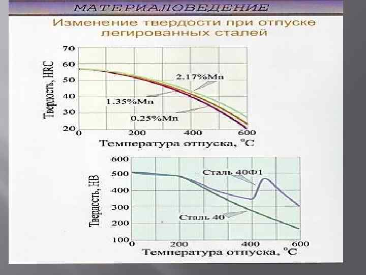 Низкий Средний Высокий мартенсит отпуска HRc 58 -62 180 -220 троостит отпуска HRc 43 -45 350 -450 сорбит отпуска HRc 23 -25 550 -650