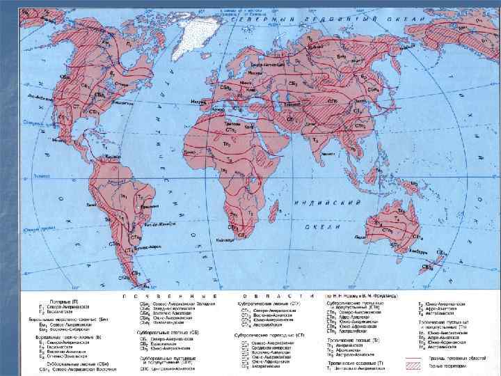 Почвенно биоклиматическое районирование n n В зависимости от особенностей климата выделяют широтные почвенно климатические пояса: тропический, субтропический, суббореальный, бореальный и полярный. Каждый из этих поясов характеризуется определенным набором почв, которые не встречаются в других поясах. Наибольшим по площади является тропический пояс, наименьшим – полярный. Пояса делятся на почвенно климатические области. В основу их выделения положен режим увлажнения и тип растительного покрова. Всего выделено 25 групп областей, объединяющих 135 почвенно климатических областей.