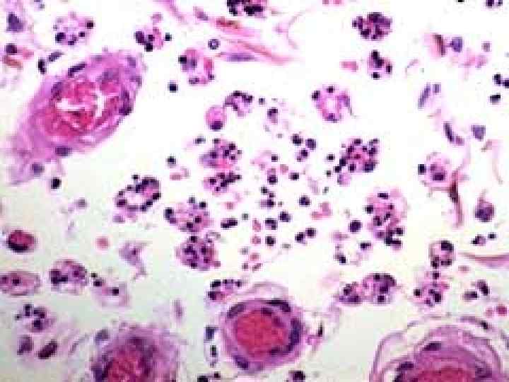 МЕНИНГОКОККОВАЯ ИНФЕКЦИЯ Острое антропонозное полиморфное заболевание вызываемое Neisseria meningitidis с аэрогенным механизмом передачи, протекающее в виде: - назофарингита, - менингококкового сепсиса, - менингита или менингоэнцефалита. ЭТИОЛОГИЯ: Neisseria meningitidis (S. Neisseriaceae, R. Neisseria ) – мелкие грам (-) кокки размером 0. 6 – 0. 8 мкм, строгие аэробы, неподвижны и в мазках чаще обнаруживаются внутри клеток по одной, парами или тетрадами. Все нейссерии имеют слизистую капсулу (кроме группы В) Разделены на 10 серологических групп: A, B, C, D, X, Y, Z, 29 E, 135 W, P.