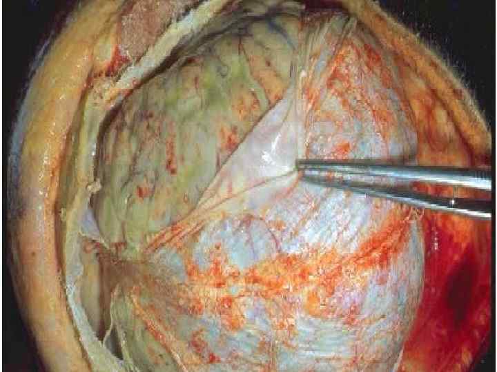 Часто сопровождается синдромом ОТЕКА или НАБУХАНИЯ головного мозга с такими проявлениями: - нарушение сознания; - двигательное беспокойство, судороги; - расстройство дыхания и деятельности ССС; - вклинивание продолговатого мозга или субэпиндимальный отек в области 3 – 4 желудочков мозга; - без адекватного лечения – летальный исход!! Иногда наблюдается синдром ЦЕРЕБРАЛЬНОЙ ГИПОТЕНЗИИ – чаще появляется на 3 -4 день у детей при лечения массивными дозами пенициллина или проведения чрезмерной дегидратации. Характеризуется резким токсикозом и обезвоживанием. Ребенок похож на «выжатый» лимон.