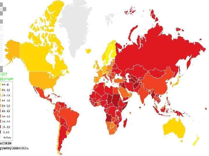 Международная организация по противодействию коррупции Transparency International составила рейтинг коррумпированности стран мира в 2010 году. Россия заняла 154 -е место (индекс – 2, 1) расположившись в одном ряду со следующими странами: Камбоджа, Центральноафриканская Республика, Коморские острова, Конго – Браззавиль, Гвинея. Биссау, Кения, Лаос, Папуа – Новая Гвинея и Таджикистан. Украина расположилась на 134 -м месте с индексом 3, 4 и обосновалась в рейтинге наряду со следующими странами: Азербайджан, Бангладеш, Гондурас, Нигерия, Филиппины, Сьерра-Леоне, Того и Зимбабве. В ТОП-10 вошли: Дания, Новая Зеландия, Сингапур, Финляндия, Швеция, Канада, Нидерланды, Австралия, Швейцария и Норвегия. Рейтинг был составлен на основе «индекса Восприятия Коррупции» (ИВК). ИВК является составным индексом, включающим данные 13 различных опросов экспертов и деловых кругов.