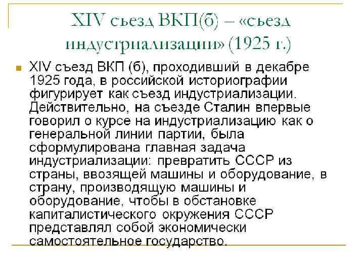 Развитие коммунистической партии РКП (б)-ВКП (б) • Х съезд (1921 г. ) – требование Ленина об усилении партийного контроля и дисциплины. Численность партии=730 тыс. чел. • С 1922 г. Сталин – Генеральный секретарь ЦК. Пост создан потому, что после отхода Ленина от руководства была нарушена прежняя система работы ЦК, которая основывалась на авторитете последнего. • 1923 г. – Сталин создает Учетно-распределительный отдел внутри Оргбюро ЦК: «кузница» партийных кадров. Основа для формирования «служилого сословия» советского общества – номенклатуры. • XVI съезд (1930 г. ) – численность партии=1 млн. 260 тыс. чел. и 712 тыс. кандидатов в члены. Центральный комитет (ЦК): • Х съезд (1921 г. ) – 25 членов • XVI съезд (1930 г. ) – 77 членов Политбюро ЦК: 10 членов • 1923 г. – ленинское «Письмо к съезду» : катализатор борьбы за власть.