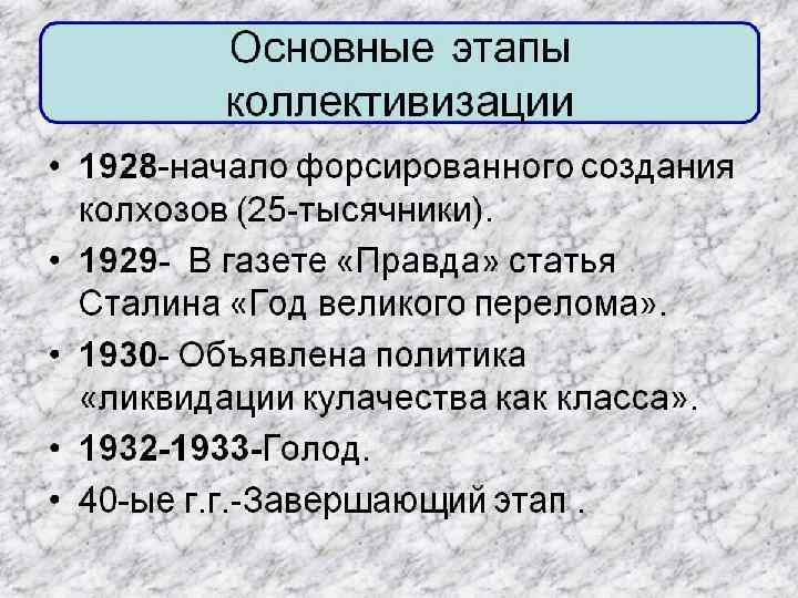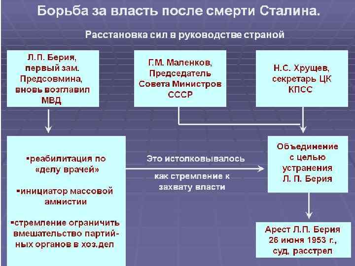 Хронология внутрипартийной борьбы и репрессий • 1923 г. – «триумвират» Сталин-Каменев-Зиновьев (против Троцкого) • 1925 г. – «дуумвират» Сталин-Бухарин против «оппозиции» (Троцкий, Каменев, Зиновьев, Радек, Пятаков, Сокольников, Преображенский и др. ) • Ноябрь 1927 г. – исключение Троцкого из партии. • 1929 г. – начало борьбы с «правым уклоном» в партии (против Бухарина, Рыкова и Томского) • 1934 г. – XVII съезд партии ( «съезд победителей» ): окончательное превращение ВКП (б) в главный механизм государственного управления. Появление понятия «генеральная линия партии» . • 1 декабря 1934 г. – убийство Кирова как повод к репрессиям • Август 1936 г. – процесс «троцкистско-зиновьевской оппозиции» . Расстрел Зиновьева и Каменева. • Январь 1937 г. – процесс «троцкистов» (Радек, Пятков, Серебряков, Сокольников и др. ) • Июнь 1937 г. – «процесс маршалов» ( «Антисоветской троцкистской военной организации» ) • 30 июля 1937 г. – Приказ наркома внутренних дел Ежова № 00447, начало Большого террора (1937 -1938 гг. ) • Весна 1938 г. - процесс Антисоветского правотроцкистского блока. Расстрел Бухарина и Рыкова.