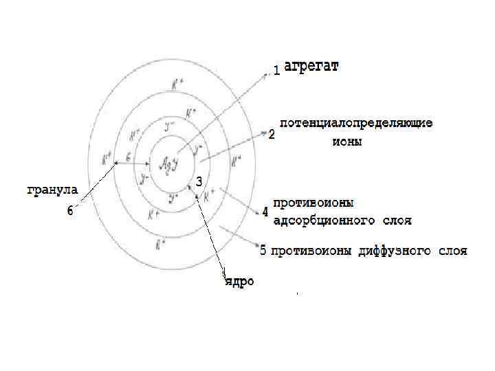 Схема строения мицеллы Золь иодида серебра, полученного по реакции взаимодействия Аg. NO 3 и KI при избытке KI. Аg. NO 3 + KI → Аg. I- + КNO 3