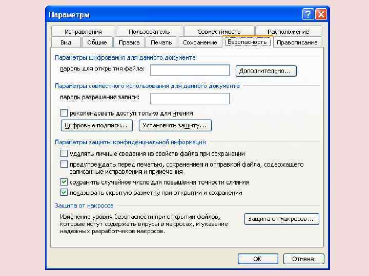 Лекция 8. Безопасность при работе с документами Microsoft Office 2010.