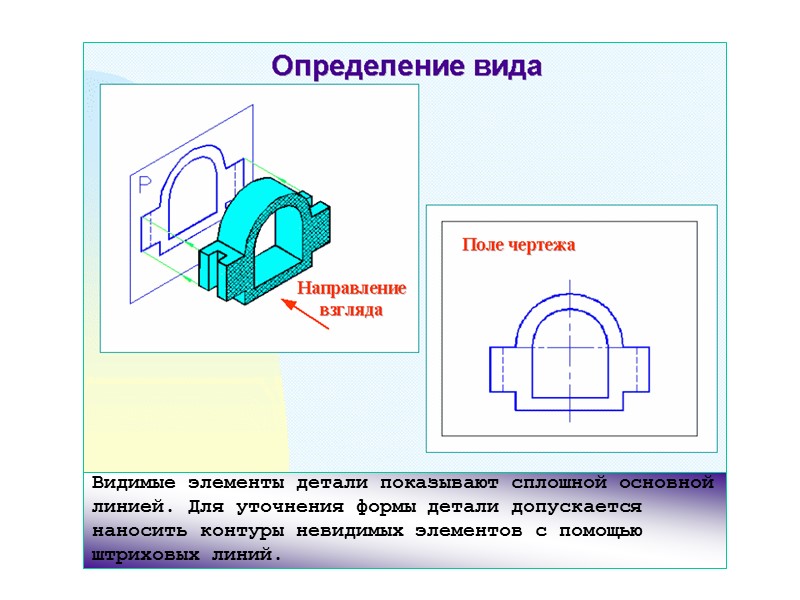 Местный вид-изображение отдельного ограниченного места поверхности предмета. Местный вид может быть ограничен линией обрыва (сплошной волнистой) или линией контура (сплошная основная).