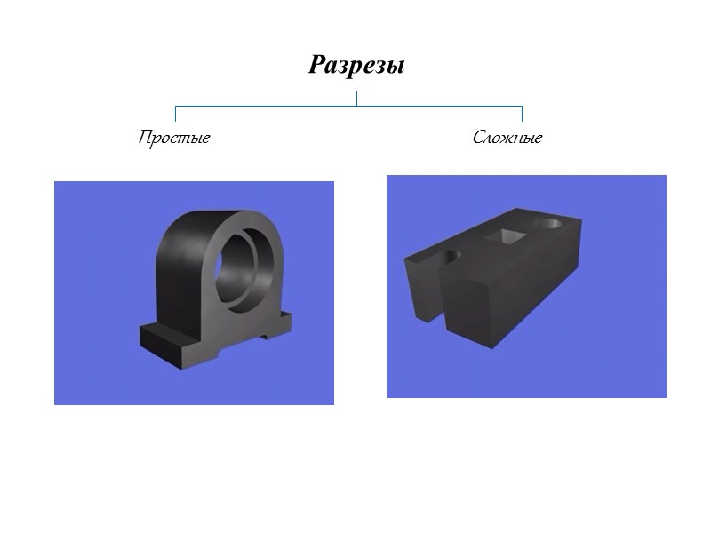 Простые разрезы Простые разрезы разделяются на: горизонтальные; вертикальные: фронтальные, профильные; наклонные; местные.