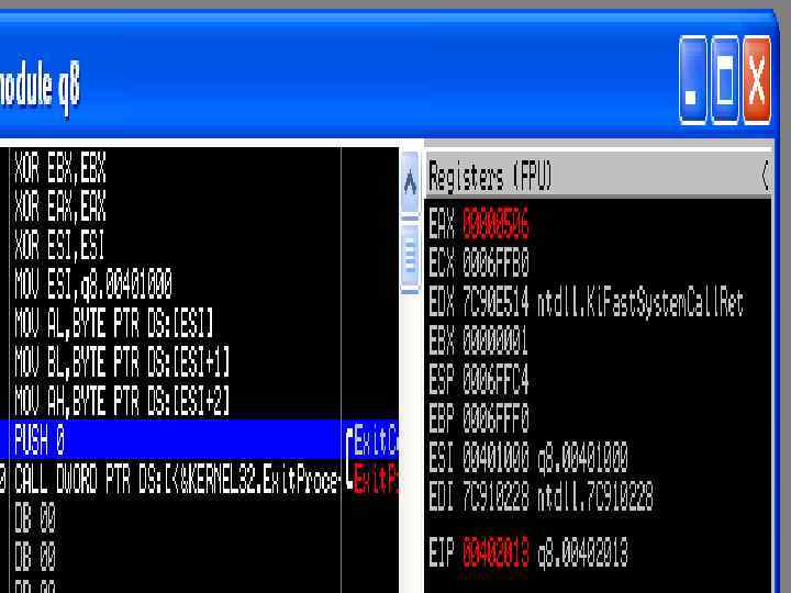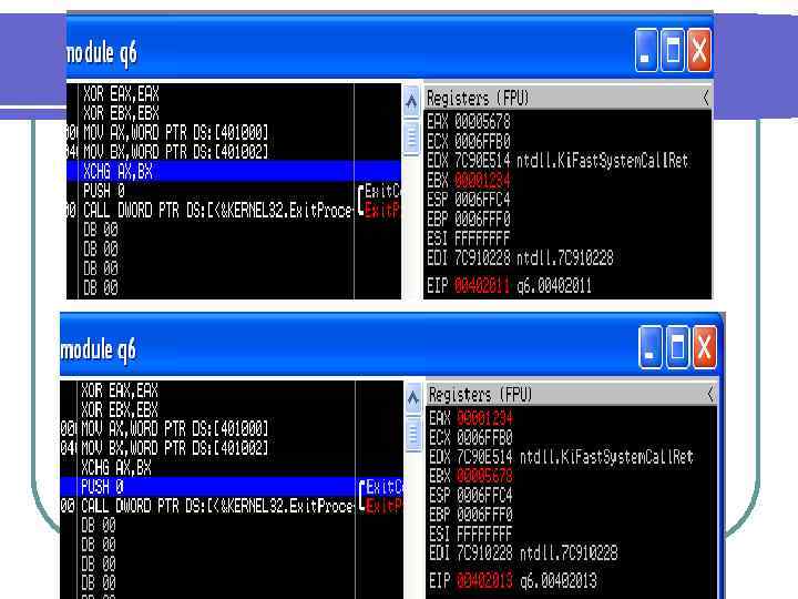 ; q 6. asm include 'win 32 ax. inc'. data a dd 12345678 h. code start: xor eax, eax xor ebx, ebx mov ax, word ptr a mov bx, word ptr a+2 xchg ax, bx invoke Exit. Process, 0. end start