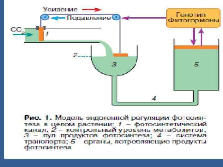 • Фотосинтездеуші және ассимиляттарды қолданатын мүшелер дің донорлықакцепторлық қарым қатынасы • ФСдің белсенділігін ассимиляттарды қолданатын мүшелер бақылайды. • ФСдік фукцияның жіне мүшелердің өсу процестерінің гормондық реттеуі жүреді. • Жоғары гормондыұ активтілігі жапырақ клеткаларын созылып өсуін ұлғайтады.