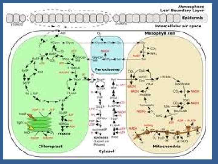• Қолайсыз жағдайда сахарозаның түзілуі төмендейді, АҚ мен орг. Қышқылдардың синтезі төмендейді. • Жапыраққа енген CO 2 нің көміртегі тыныс алуға қатысатын қосындылардың құрамында табылған. • Онда стресс жағдайда ФСдің өнімдері тыныс алуда АҚға дейін тотығады, өсімдіктің өнімділігі төмендейді. • Қалыпты жағдайда ол процестің үлесі төмен.