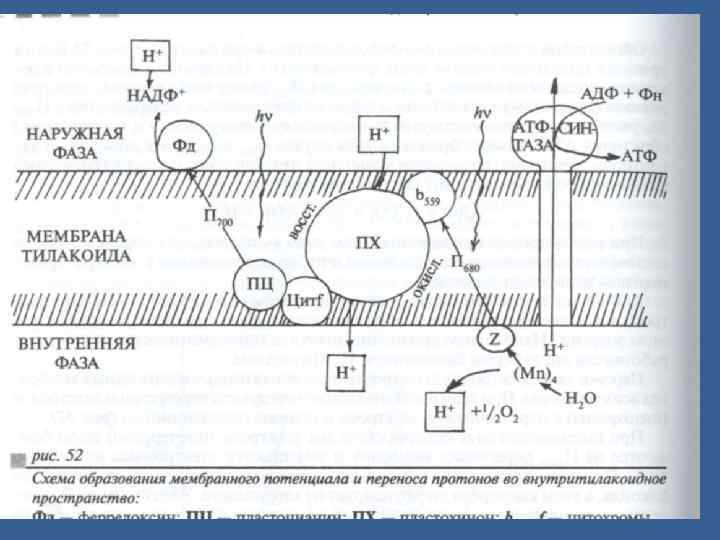 • Сонымен, Хл 680 -тен Хл. 700 -ге 2 электрон тасмалданғанда тилакоидтардың ішкі кеңістігінде протондар жиналады. • Протондардың стромадан тилакоидтардың ішкі кеңістігіне активтік тасмалданудың нәтижесінде мембранада сутектің электрохимиялық потенциалы құралады (∆μН). • Ол екі компонентерден тұрады: • Химиялы - ∆р. Н (концентрациялық), • Электрлік - мембрананың 2 жағында қарсы зарядтар жиналғандықтан түзіледі (ішкі мембрананада протондар жиналғанның арқасында).