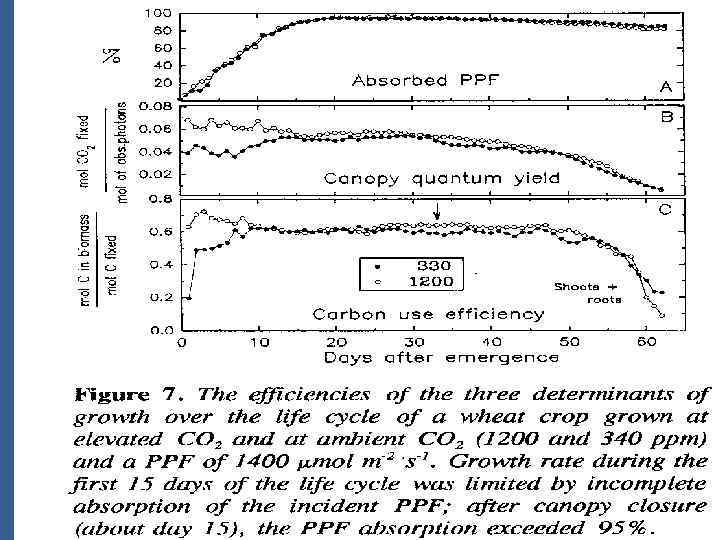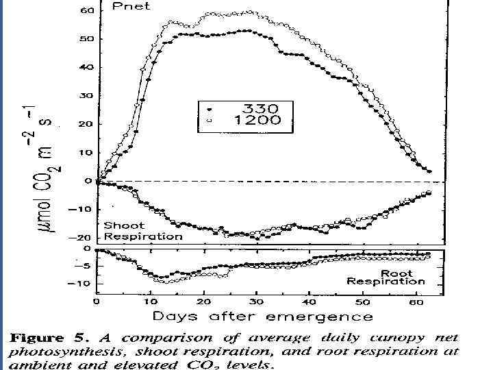 • Это полезно для интеграции мгновенных измерений, показ на рис. 4, развить Среднее значение СО 2 газообмена • Рез. Показ на орис. 5 провод. При низком (340 ppm)и высоком (1200 ppm) CO 2. • Заключение из данных: • Полезный эффект от повышенного СО 2 идет через весь жизн. цикл • Пик Корневого дыхания хорош до ФС • Повышенный уровень СО 2 не вызывает пропорциональ. Увелич. В дыхании надзем. Орг.