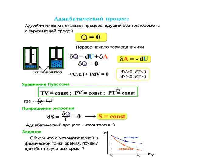 Интегрируя это уравнение в пределах от до и соответственно от до , а затем потенцируя, придем к выражению или Так как состояния 1 и 2 выбраны произвольно, то можно записать Полученное выражение адиабатического процесса, уравнением Пуассона. есть уравнение называемое также