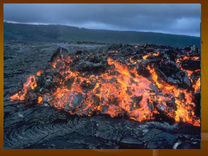 Жидкие вулканические продукты представлены магмой. Магма, поднимаясь вверх по каналу и, достигнув поверхности Земли, изливается в виде лавы (лаваре - мыть, стирать, лат. ), отличающейся от магмы тем, что она уже потеряла значительное количество газов. Главные свойства лавы - химический состав, температура, содержание летучих, вязкость - определяют характер эффузивных извержений, форму, структуру поверхности и протяженность лавовых потоков. Если вязкость у лав низкая, то они могут растекаться, покрывая большие пространства и далеко уходя от центра излияния. Высокая вязкость, наоборот, вынуждает лавы нагромождаться недалеко от места извержения, течь гораздо медленнее, чем маловязкие лавы. Химический состав лав изменяется от кислых, содержащих больше 63% Si. O 2 и до ультраосновной, Si. O 2 меньше 45%. Все остальные лавы имеют промежуточное содержание оксида кремния.