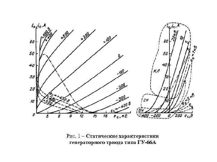Рис. 1 – Статические характеристики генераторного триода типа ГУ-66 А